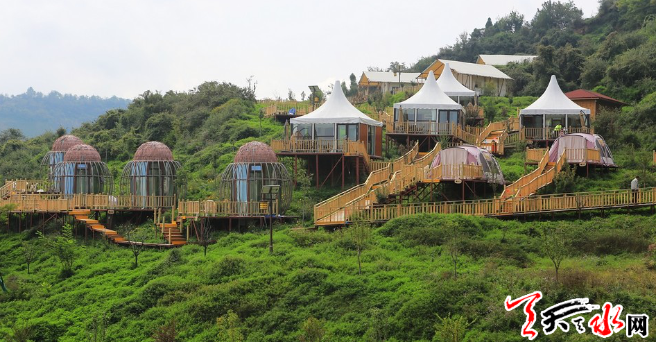 南山云端体育露营公园项目位于秦州区玉泉镇李官湾村,占地面积260亩,总投资3600万元。该项目以骑马、射箭、 狩猎、滑索、滑草、滑翔等运动放松项目为依托,融入本地特色餐饮,打造集放松、运动、文化体验、美食住宿等于一体的欢乐体验园;同时建造滑雪场及亲子活动等综合体项目,利用现代高新技术,将天水市的旅游经济打造可持续性发展,打造户外拓展及文化教育功能相互融合的体验式露营基地。该项目分两期实施,一期建设帐篷酒店营位区、房车营位区、骑马场、射箭场等。二期建设儿童乐园、音乐广场、房车影院、滑雪场、滑草场、真人CS户外拓展等。目前,已引进房车5辆,搭建帐篷36座,建成占地10亩的跑马场一处,一期项目部分完工。