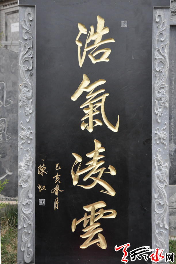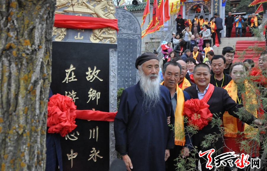 祈福活动结束后,全国政协常委、中国道教协会原会长任法融为已故著名文学评论家雷达为故乡题写的“故乡山川永在游子心中”和书法家陈虹书写的“浩气凌云”书法石碑揭碑。