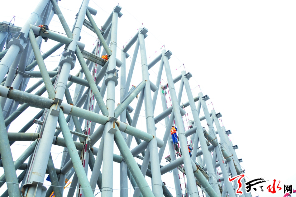 与此同时,高空拼接焊接工作也是该项目的一大难点。“钢结构接口的焊接点都是不规则的,可以说每一个焊接点都不一样。整个拼装精度要求非常高,环形空间钢结构施工质量控制难度大,再加上钢结构立柱最高达到了20多米,焊接工就必须在高空进行焊接。往往一个接口就要焊接好久,而且还要焊好几遍,全部接口都要接受探伤仪检测。”马周钰说,整个项目高空拼装要达到12000多次,全部的焊接点都是用的一级焊缝,要达到100%检测合格。