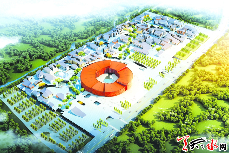 “主要分为游客服务区、秦文化展示区、民俗体验区、民居展示区、度假生活区五个大区,中间这个圆形建筑物是A区,也是整个游客综合服务区的门户。”中铁二十一局二公司麦积山景区游客服务中心项目部总工程师马周钰介绍,游客服务中心将成为麦积山景区旅游的起始点,是进入景区的交通枢纽,也是景区的重要接待中心,建成投入使用以后,游客将从服务中心乘坐观光车进入景区。