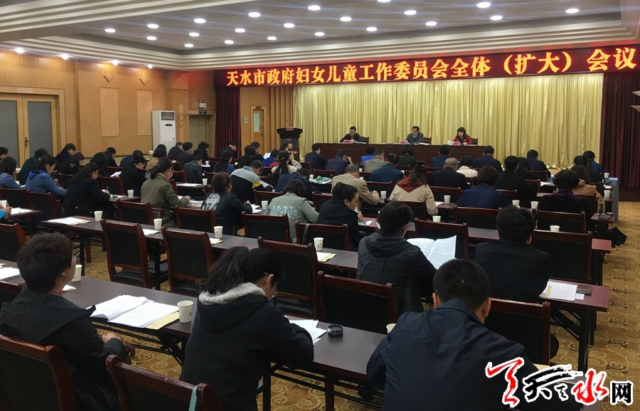 本次会议主要任务是以习近平新时代中国特色社会主义思想为指导,学习贯彻落实省政府妇儿工委全体(扩大)会议精神,审议《天水市政府妇女儿童工作委员会工作规则》《天水市政府妇女儿童工作委员会各成员单位职责》《天水市政府妇女儿童工作委员会成员单位联络员职责》,全面总结2018年全市实施妇女儿童发展规划工作,安排部署2019工作任务。