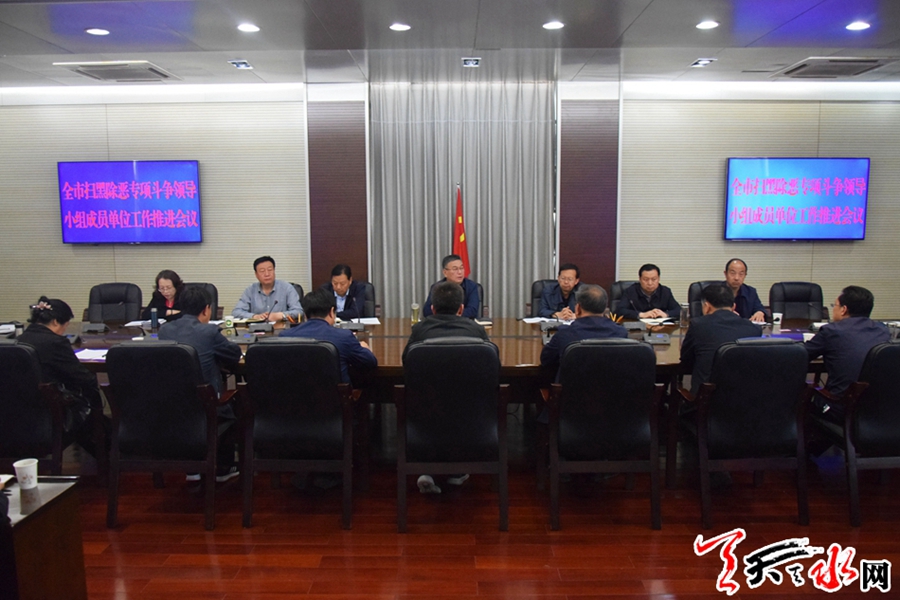 天天天水网讯【全媒体记者冯丽娟】5月8日,市委常委、政法委书记、市扫黑除恶专项斗争领导小组常务副组长蒲军主持召开市扫黑除恶专项斗争领导小组成员单位工作推进会议,传达了省委省政府扫黑除恶专项斗争推进会议精神和省扫黑除恶专项斗争联络员培训会议精神,就领导小组各成员单位全力做好当前扫黑除恶专项斗争各项重点工作进行了具体安排部署。