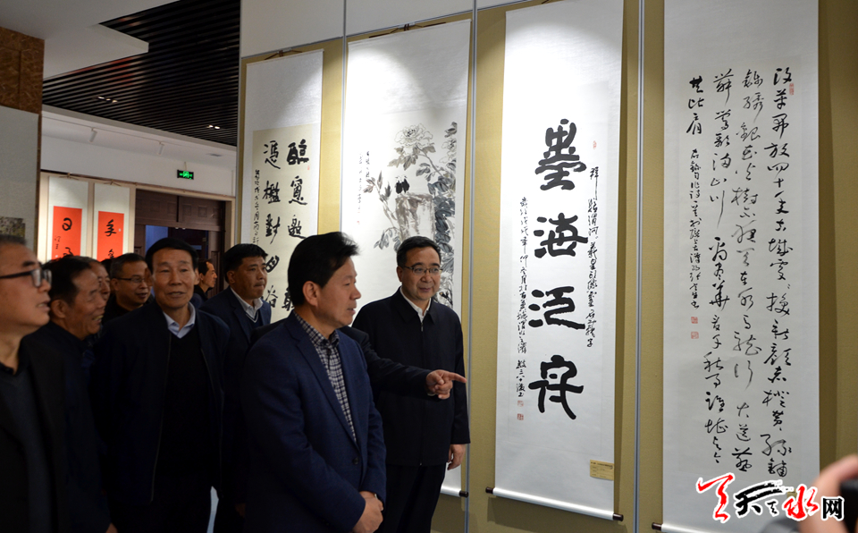 据悉,本次展览,是我市县区巡展的首展。展出的130余幅书画摄影作品,内容丰富,主题突出,立意新颖,风格鲜明,或取材于新中国的光辉历史,或选题于百姓生活,或寄情于大好河山,或畅怀于诗文佳句,以丰富的笔墨语言、生动的光影效果、饱满的思想感情,展示了天水厚重的历史文化底蕴,歌颂了新中国成立70年来,特别是改革开放40年来,我市政治、经济、文化、社会、生态各项事业取得的辉煌成就,表达了广大人民群众对全面建成小康社会、建设幸福美好新天水的热切期盼,体现了全市各级政协组织和广大政协委员竭诚尽智促发展、惠民生的良好精神风貌。