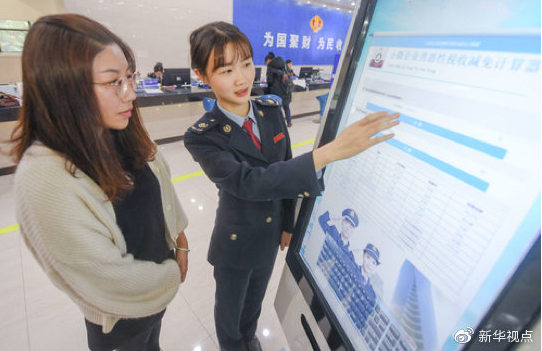 4月1日,在福建省泉州市丰泽区税务局办税服务厅,工作人员利用“税秒算”计算工具向纳税人介绍增值税税率下调前后变化。新华社记者宋为伟摄