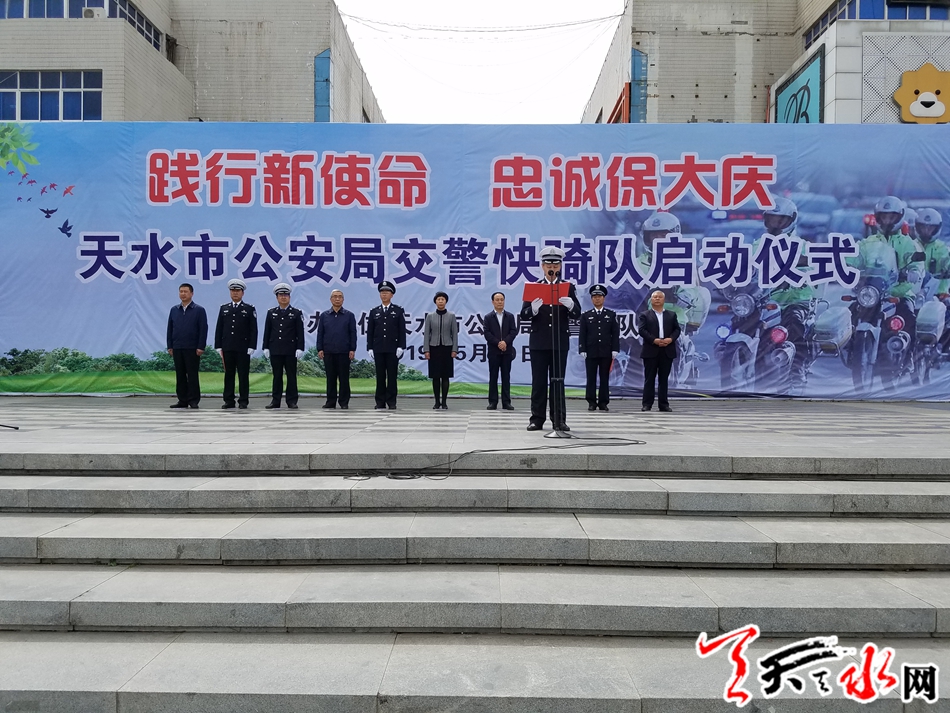 启动仪式上,秦州公安分局城区交警大队民警代表快骑队进行表态发言,市公安局党委委员、交警支队支队长柳润泰作工作动员,省公安厅交管局副局长王旺春代表省厅交管局作讲话,市公安局党委专职副书记缑西保主持仪式。市公安局交警支队班子成员,秦州区委、区政府分管领导,全市公安交警快骑队队员以及市公安局交警支队机关全体民警以及省市区新闻媒体记者共200余人参加启动仪式。