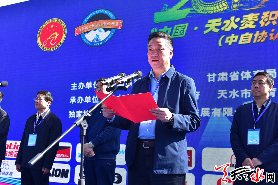 市委副书记、市长王军宣布2019年“中国·天水麦积”山地自行车公开赛开赛。