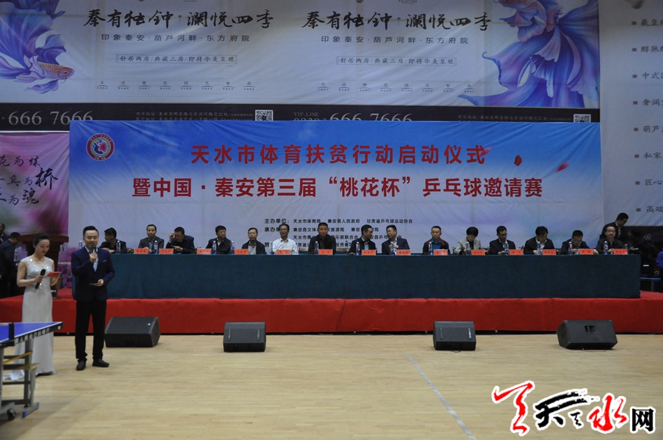 天天天水网讯(记者 刘晓亚)5月10日晚8时,天水市体育扶贫行动暨中国--秦安第三届“桃花杯”兵乓球邀请赛开幕。此次赛事从5月10日开始到5月12日结束,共计3天。