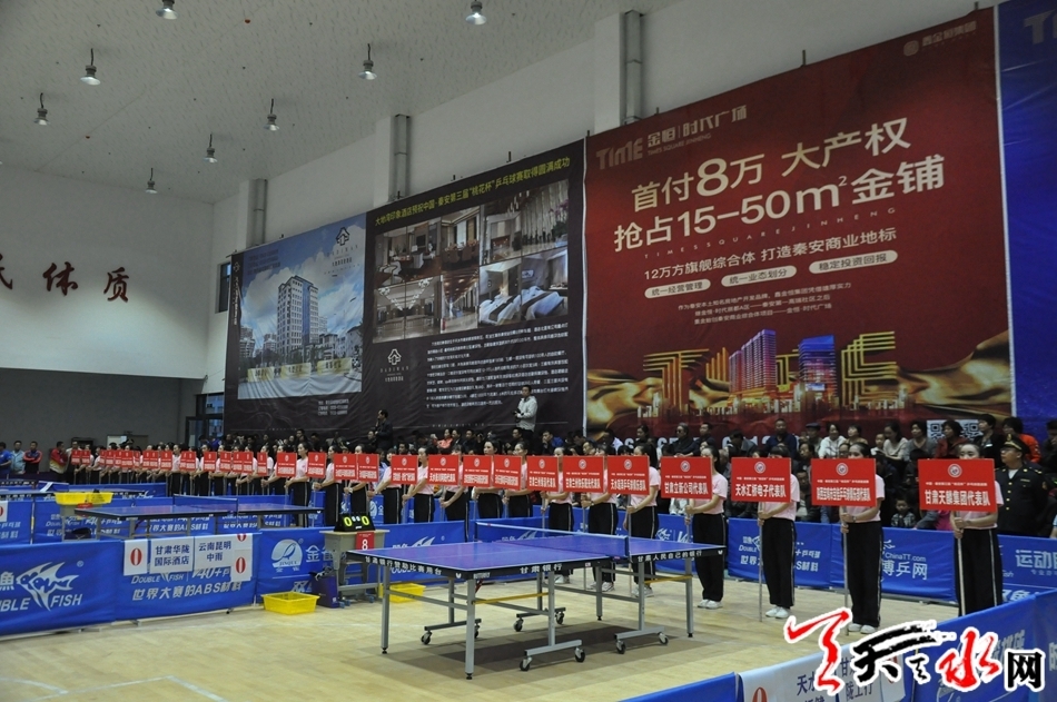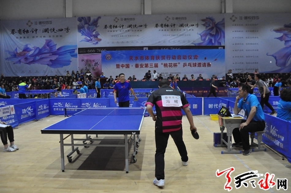 中国--秦安第三届“桃花杯”兵乓球邀请赛是一项以“全民健身+体育扶贫为主题的品牌体育赛事”,举办此次赛事,有利于传播全民健身理念、提振脱贫攻坚精气神,为我市打赢脱贫攻坚,实现与全国全省同步建成小康社会营造良好氛围。此次赛事共有来自云南、陕西、四川等地32支代表队应邀参赛。