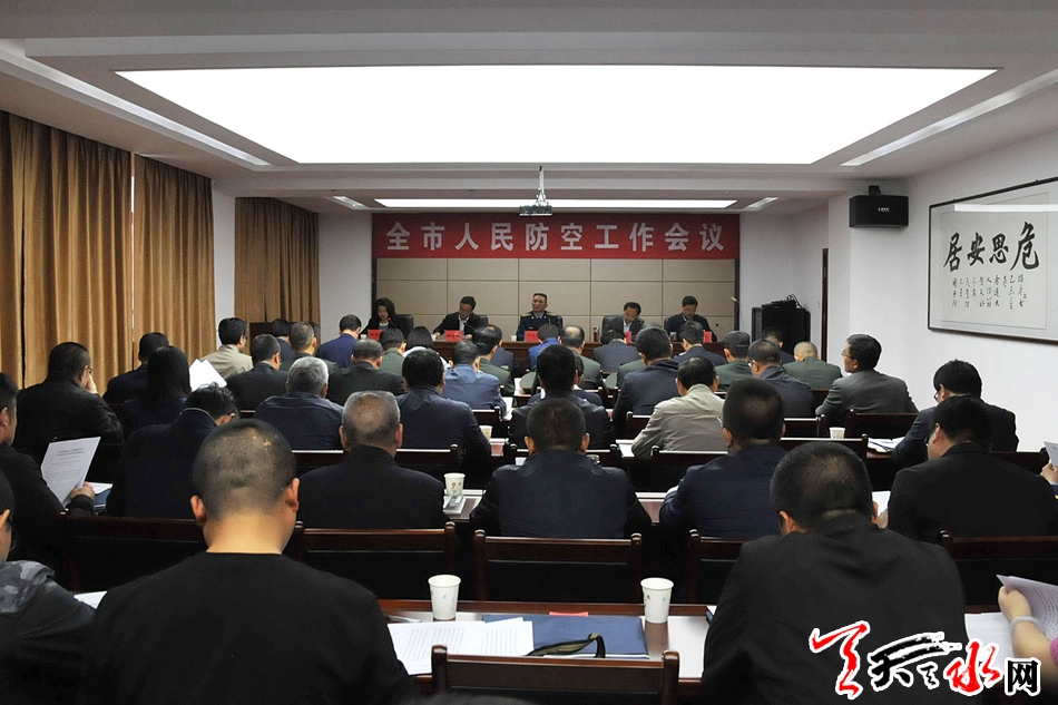 天天天水网讯【全媒体记者童强】5月10日,全市2019年人民防空工作会议召开。主要是以习近平新时代中国特色社会主义思想为指导,深入贯彻党的十九大和十九届二中全会、三中会议精神,及习近平总书记对人防工作的重要指示精神,全面落实甘肃省人民防空工作暨全面从严治党工作会议精神、市委七届七次全会暨全市经济工作会议精神和国家人防办2019年度工作筹划对接活动要求,总结2018年人防工作,安排部署2019年工作任务。