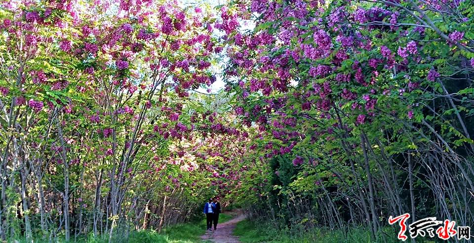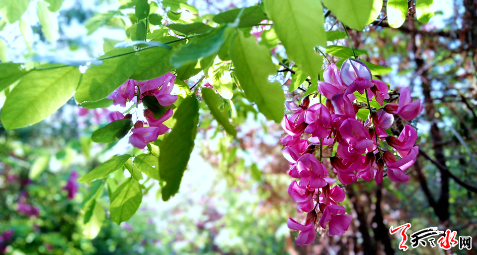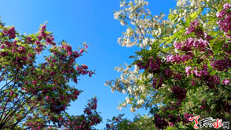 进入四月,天水的花事盛宴接踵而来,正如你方唱罢我登台。在欣赏完樱花的烂漫、桃花的夭夭、郁金香的千媚百态之后,在明媚的春光里,天水的槐花如期绽放,如火如荼、若诗似画的槐花惊艳了山野寂寥的光阴。