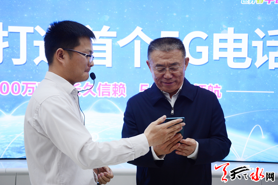 市委书记王锐与甘肃移动总经理彭晓川运用首个5G视频电话通话