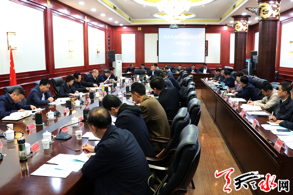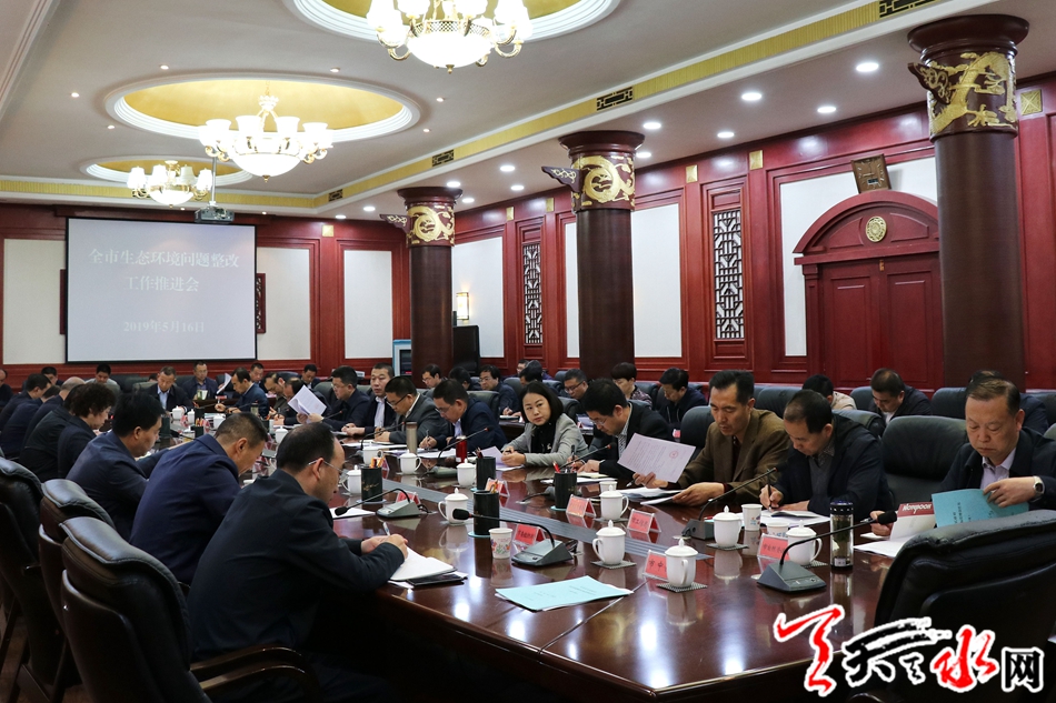 会议传达了省、市领导关于生态环境问题整改工作的批示精神;宣读了《关于开展天水市2019年生态环境保护督导检查工作的通知》;书面传达了中央环保督察组对山东省、陕西省“回头看”及专项督察反馈意见和典型案例;通报了生态环境部西北督察局督察调研以及省第六督导检查组专项督导检查情况;书面交办了省第六督导检查组督导检查发现的问题;市政府与市直相关部门签订生态环境保护目标责任书。