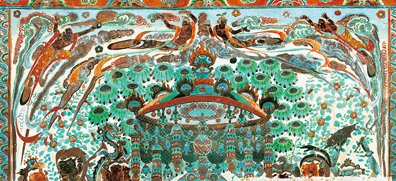 敦煌是古代中国认识世界的前沿,也是当时世界了解中国的窗口之一。在这里,来自印度、希腊、波斯等国家和中亚地区的文化,与中国文化平等对话,在交流融合中不断创新、不断进步,使其成为中西文明交往的样板。图为敦煌莫高窟第320窟的壁画。 敦煌研究院供图