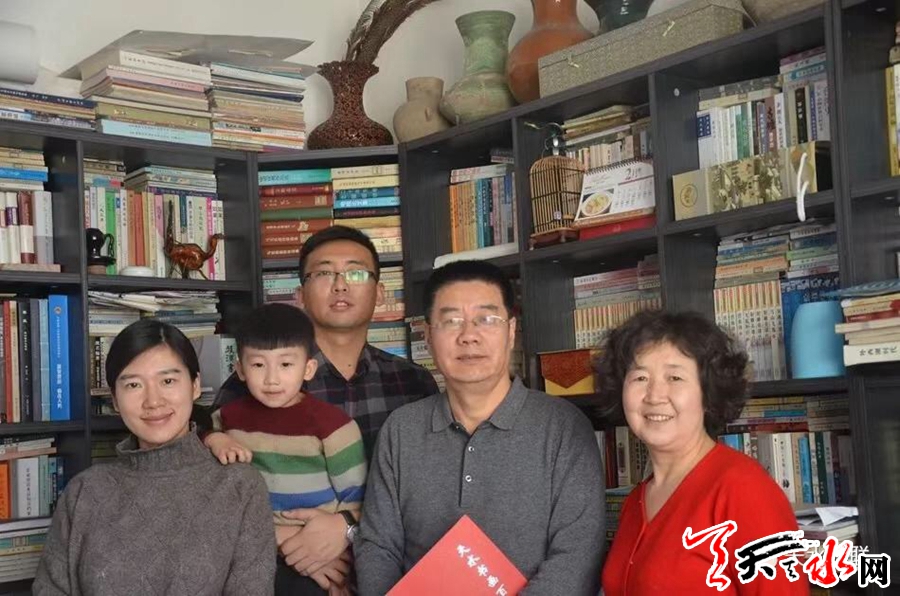 阎虎林,家住秦州区北关办事处绿色市场社区,现为天水广播电视台栏目制片人,甘肃省作家协会会员。他喜欢读书、买书、藏书,全家形成了浓厚的读书氛围,儿子和女儿从小就喜爱文学写作,妻子郝丽一直支持丈夫和子女的学习和工作,时常帮丈夫在电脑前打一些稿子,对于爱书的丈夫经常从书店抱回来一摞一摞的书从不阻拦和埋怨,而是把书房整理的井井有条,让全家在浓浓的书香氛围中愉快的读书和写作。三十多年来先后收藏有文学、史地、科学、大众医学等各类图书4000余册,不仅全家进行阅读,而且无偿借阅给亲朋好友。为了让更多的人享受到精神食粮,阎虎林还在老家天水村设立了农民阅览室,免费让乡亲们阅读,给有关部门建议于2017年在天水镇创办了天水镇老年大学,成为天水市首家农村老年大学。“书卷多情似故人,晨昏忧乐每相亲。”读书写作已经成为阎虎林工作和生活的一大乐趣,也是书香家庭幸福生活的精神追求。