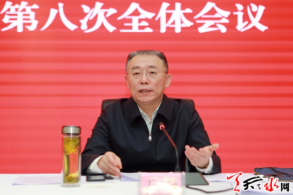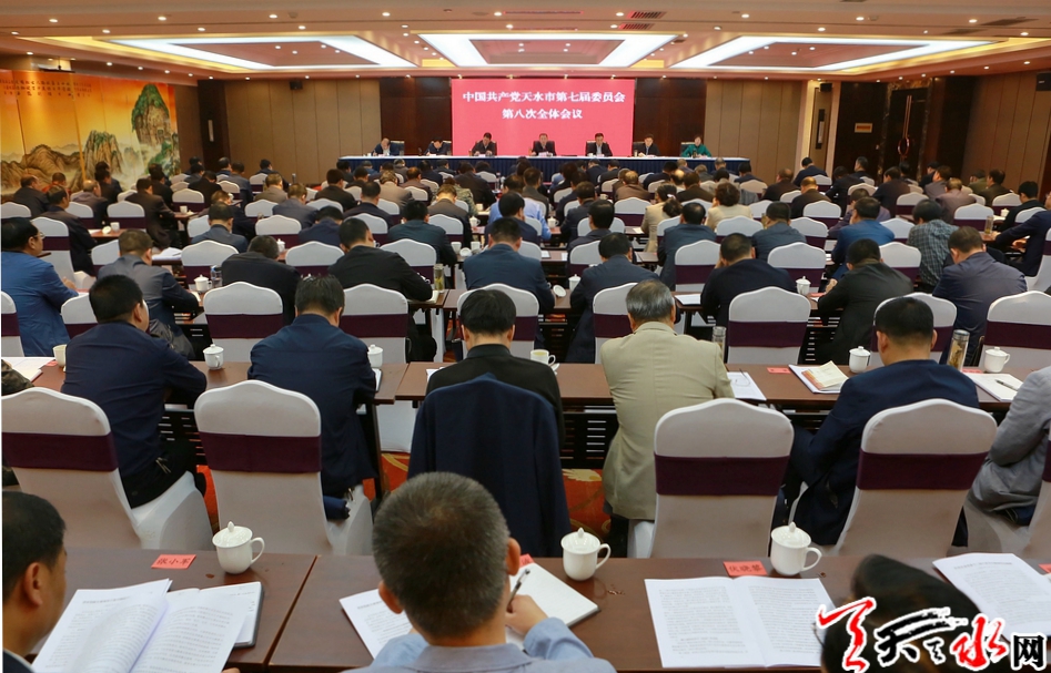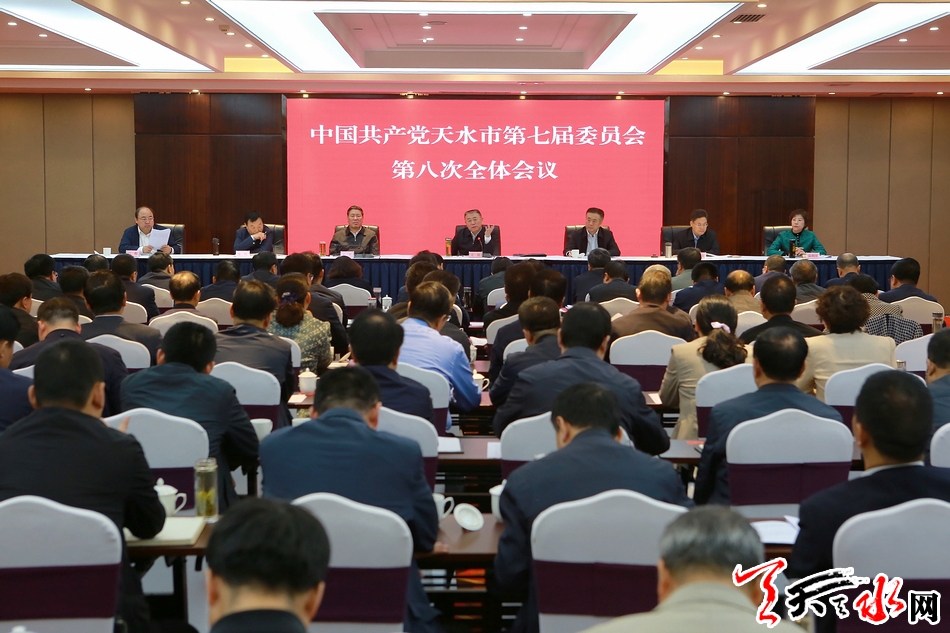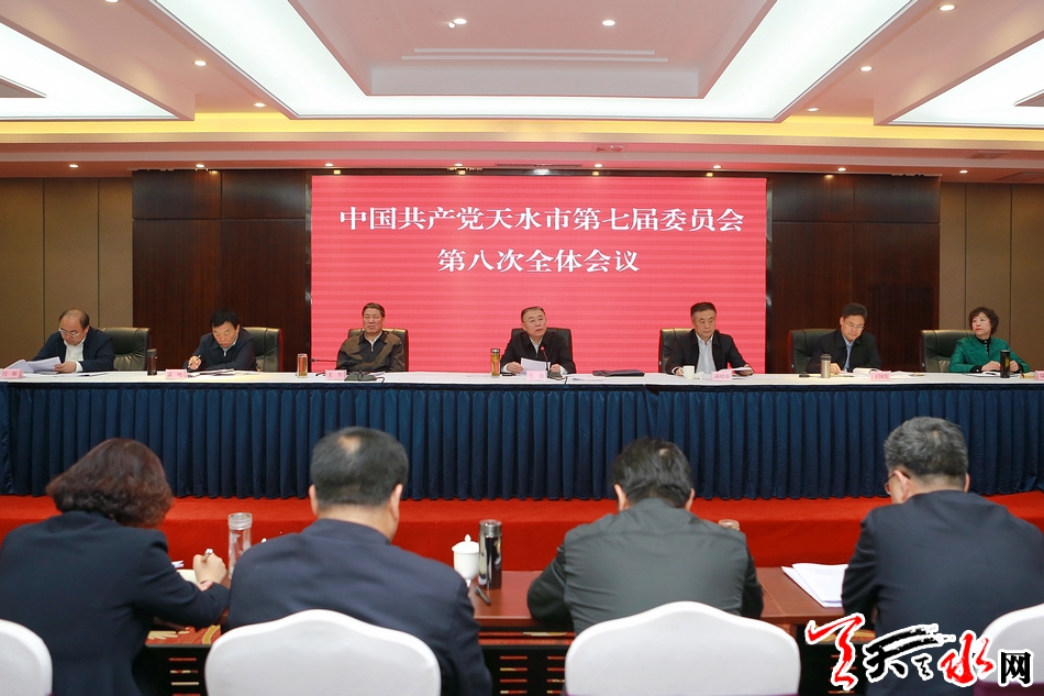 天天天水网讯【全媒体记者王晓馨】5月17日上午,中国共产党天水市第七届委员会第八次全体会议召开。全会以习近平新时代中国特色社会主义思想为指导,全面贯彻落实习近平总书记视察甘肃重要讲话和“八个着力”重要指示精神、全国两会期间参加甘肃代表团审议时的重要讲话精神,深入学习贯彻习近平总书记在今年省部级主要领导干部专题研讨班和解决“两不愁三保障”突出问题座谈会上的重要讲话精神,传达贯彻省委十三届八次全体会议和省市党政主要领导干部专题研讨班精神,审议通过了《中共天水市委关于贯彻落实〈中共甘肃省委关于深入贯彻落实习近平总书记重要讲话精神加快建设幸福美好新甘肃不断开创富民兴陇新局面的决定〉的意见》,安排部署当前和今后一个时期的工作。