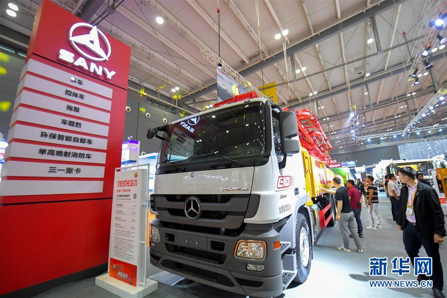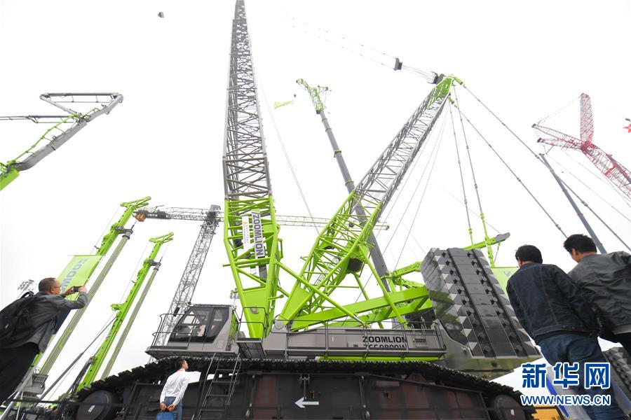 参观者在长沙国际工程机械展览会上参观中联重科展出的产品(5月15日摄)。新华社发(陈泽国 摄)