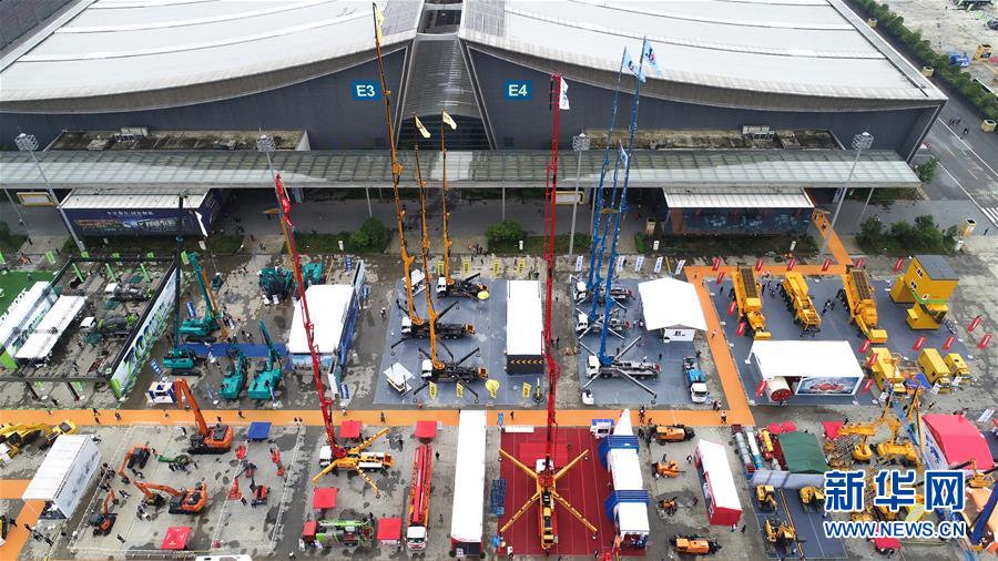 5月15日无人机拍摄的长沙国际工程机械展览会室外展区。 新华社发(陈泽国 摄)