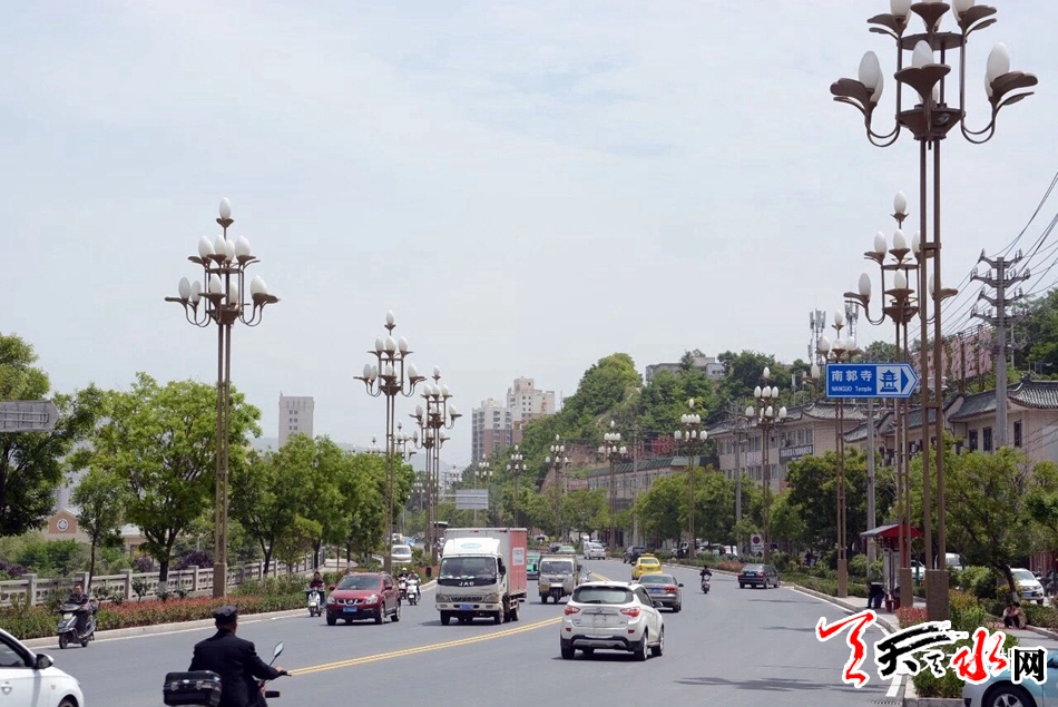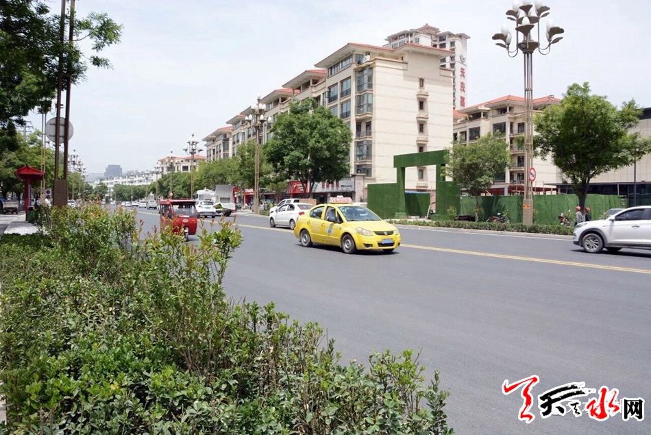5月20日上午,在秦州区羲皇大道南郭寺路段,来往的车辆从平坦、宽阔的道路上驶过。