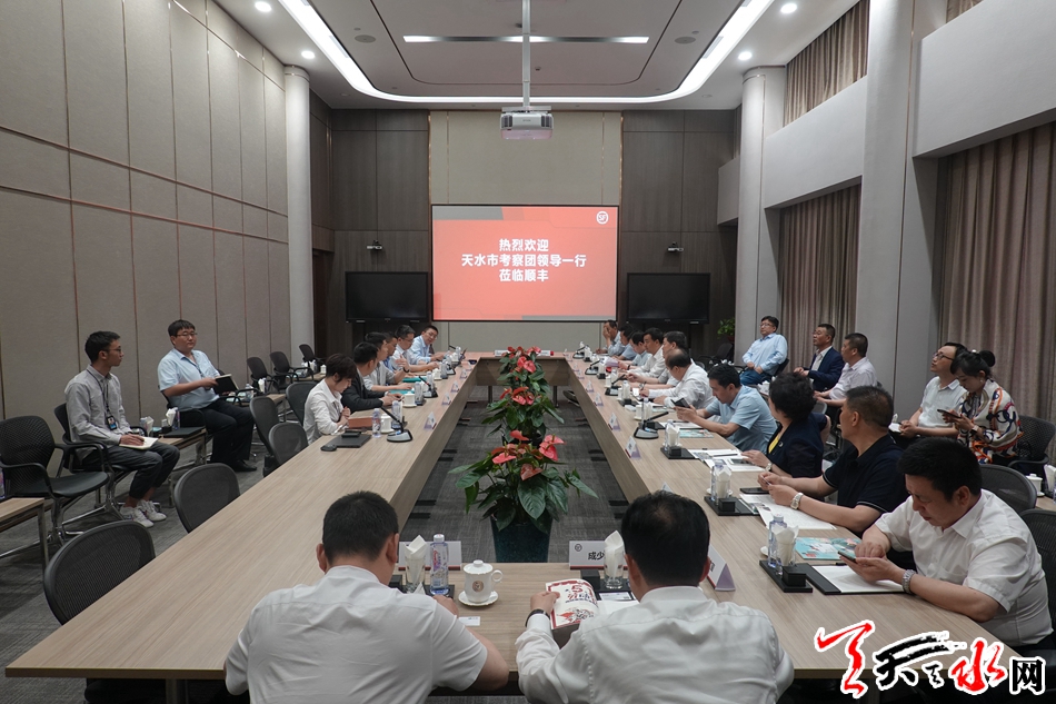 王军一行对顺丰集团总部进行了参观考察,顺丰集团副总裁、丰农科技有限公司董事长刘海波就顺丰集团丰农科技公司的发展、科技大数据的应用和农业产业链解决方案向考察团做了详细的介绍。王军市长对顺丰给予了高度的评价和认可。王军说,天水历史文化灿烂,自然生态、气候条件良好,适宜于多种农作物生长,是我国北方最佳的水果蔬菜生产基地之一,也是全国首批10个循环农业示范市之一,花牛苹果、秦州大樱桃、秦安水蜜桃、甘谷辣椒、武山韭菜享誉全国。顺丰集团深圳市丰农科技有限公司能与天水市政府签订现代农业全产业链合作框架协议,对于调整农业产业结构、发展服务产业、助力脱贫攻坚具有重要意义,希望通过与顺丰集团深圳市丰农科技有限公司签订现代农业全产业链合作框架协议,从智慧农业,销售渠道拓展,公用品牌建设,物流仓储建设等方面深度合作,助力天水市农特产品上行。将天水打造成辐射陇东南乃至西北地区的水果蔬菜生产物流集散基地。