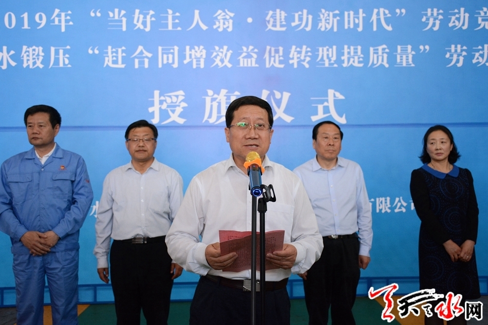 天天天水网讯【全媒体记者马放】5月24日,我市2019年“当好主人翁·建功新时代”劳动竞赛启动暨天水锻压“赶合同增效益促转型提质量”劳动竞赛授旗仪式在天水锻压机床有限公司举行。市人大常委会副主任、市总工会主席蒲朝晖出席授旗仪式并讲话,市总工会、市工信局和有关企业负责人及职工代表参加授旗仪式。