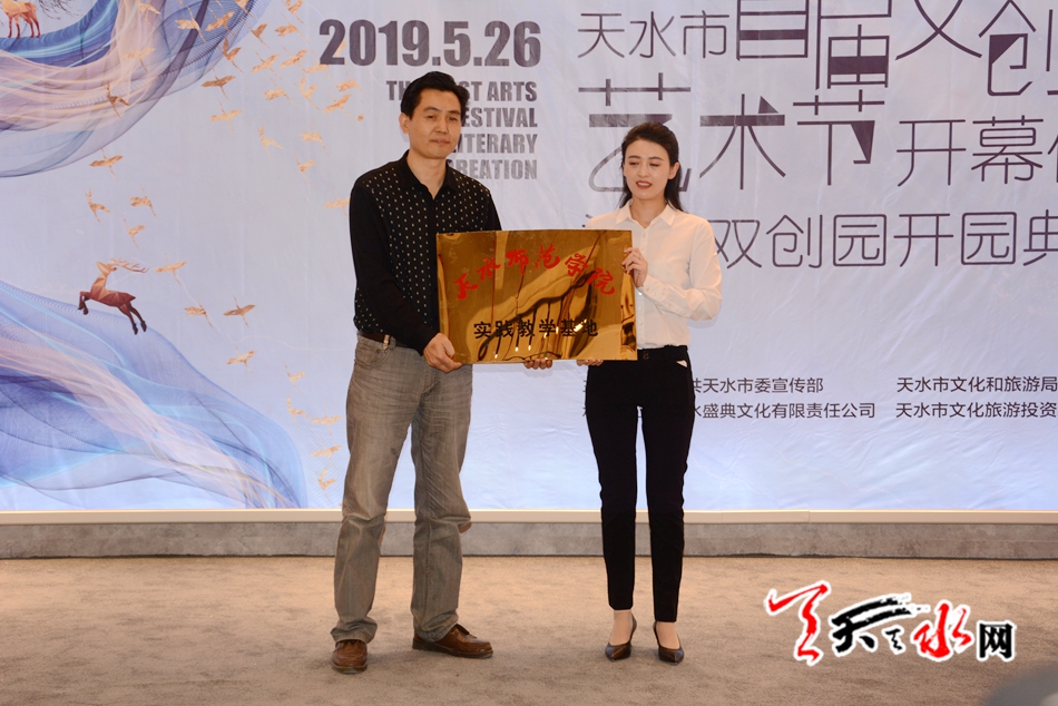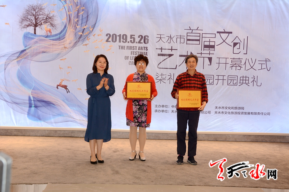开幕式上,市文化和旅游局负责人介绍了本次艺术节和园区基本情况;市领导为入驻园区的非遗传承人和企业代表颁发了“柒礼”双创园孵化工作室牌匾;天水师范学院文学与文化传播学院,省工业职业技术学院双创学院负责人向“柒礼”双创园颁发了实训基地牌匾。