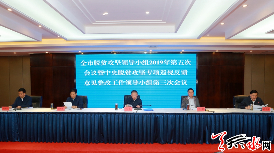 天天天水网讯【全媒体记者吴丽娜】5月28日,全市脱贫攻坚领导小组2019年第五次会议暨市中央脱贫攻坚专项巡视反馈意见整改工作领导小组第三次会议召开。市委书记王锐出席会议并讲话。他强调,全市上下要深入学习贯彻习近平总书记关于扶贫工作的一系列重要论述,充分认清面临的形势和任务,高度重视问题整改,及时弥补工作差距,坚定必胜信心、铆足拼搏劲头,确保高质量完成年度脱贫攻坚各项目标任务。