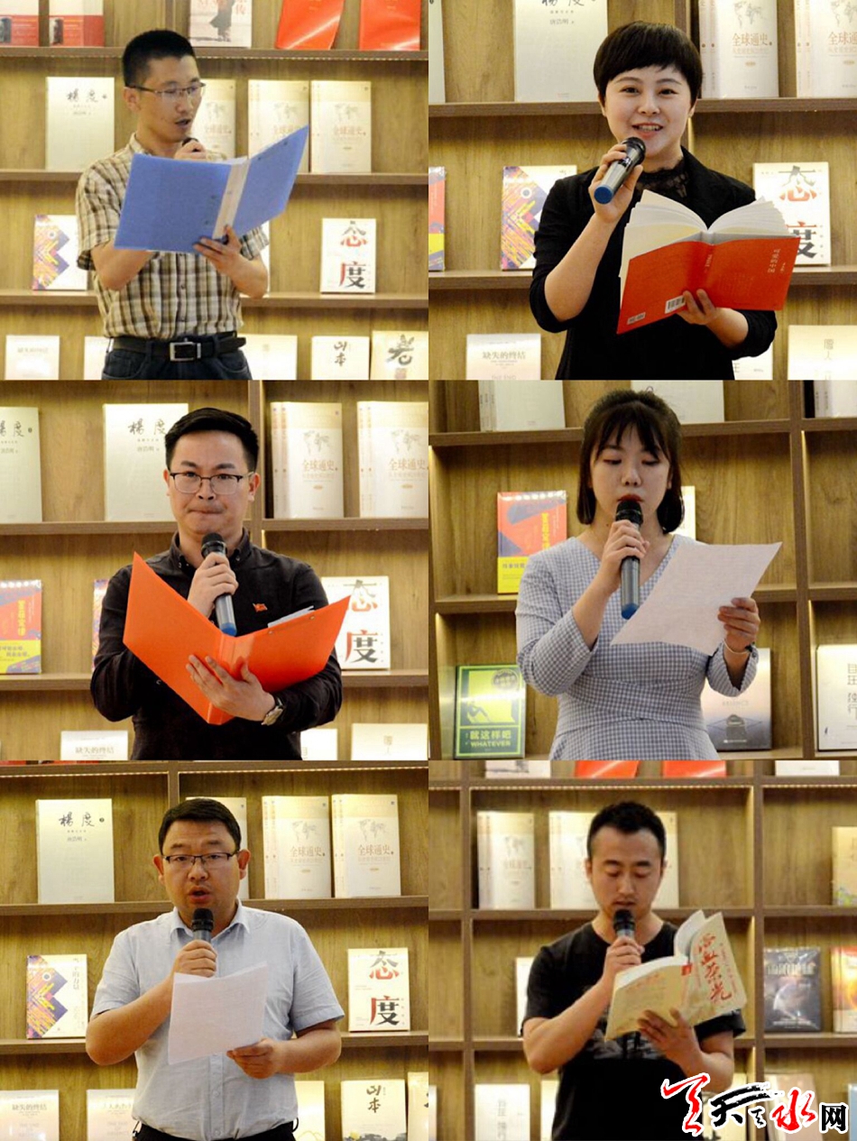 天天天水网讯(见习记者罗馨)5月31日下午,市委办公室在佳•水岸小镇丽泽书院组织开展了“礼赞时代”——经典诵读活动。活动中,18名干部声情并茂地诵读了《我骄傲我是中国人》《读懂习近平这“三问”》《匆匆》《风雨无阻创造美好生活》《谏逐客书》《忆大山》《为人民服务》《月光下的中国》等弘扬时代主旋律、传播社会正能量的经典作品,表达了机关干部热爱党、热爱国家、热爱生活的思想感情。一首首诗歌、一篇篇散文在他们的精彩演绎下,极富感染力,赢得了阵阵掌声。