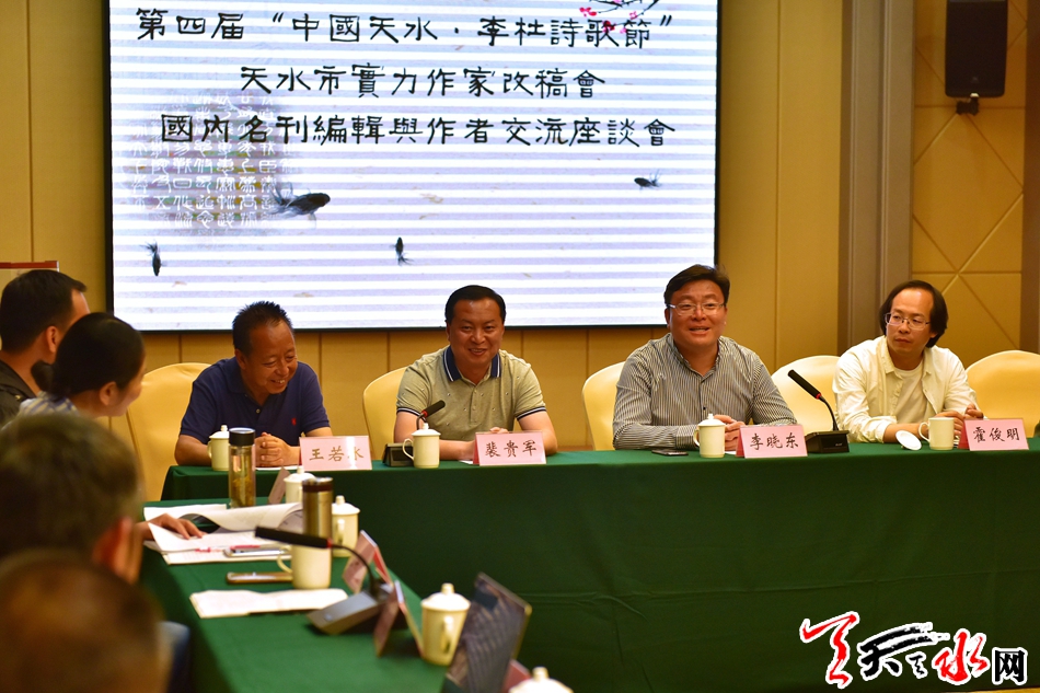 天天天水网讯【天水晚报见习记者 杨心雅】6月1日晚,由第四届“中国天水·李杜诗歌节”组委会、《小说选刊》杂志社、甘肃省作家协会、天水市作家协会主办,天水天庆房地产开发有限公司赞助的第四届“中国天水·李杜诗歌节”天水实力作家改稿会在天水市麦积区滨河大酒店会议室举行。