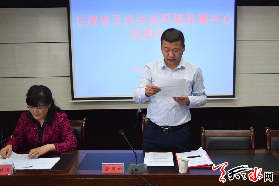 天天天水网讯【全媒体记者冯丽娟】6月2日,甘肃省天水生态环境监测中心在我市挂牌成立。省生态环境厅生态环境保护督察专员蔡桂星出席挂牌仪式。