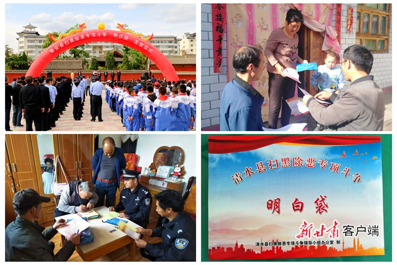 天水市各县区将扫黑除恶专项斗争的重要意义、打击重点、举报方式等内容制作成“明白袋”,逐户发放至居民手中。同时,坚持从细微处入手、从基层做起,组织乡镇(街道)、村(社区)工作人员及社区民警、楼栋长、志愿者等通过张贴宣传海报、制作手抄报、开展宣讲及文艺演出等方式,让扫黑除恶宣传更接地气,确保扫黑除恶内容群众知晓、过程群众参与、结果群众评判。