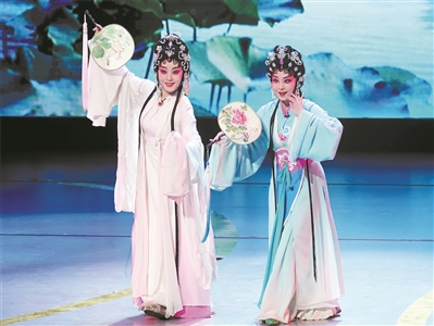 曾小敏(左)和朱红星表演粤剧《白蛇传·情》片段。