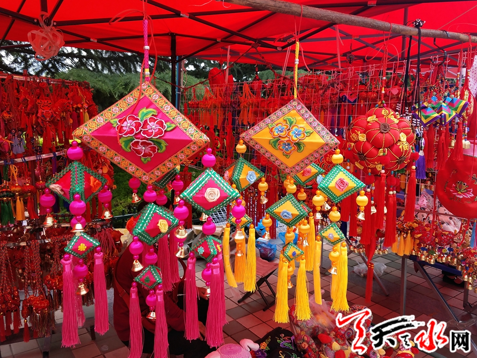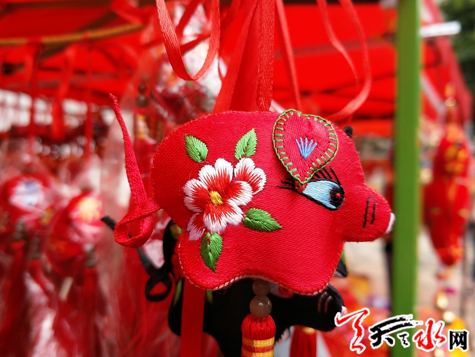 香包在天水民间俗称荷包,五彩布,五彩线在一双巧手的裁剪和缝制下,幻化成各种带有美好寓意的形状,飞禽走兽、花鸟鱼虫、十二生肖等制做精巧,栩栩如生。天上飞的、地上跑的、水里游的,应有尽有。花红柳绿的“荷包”里再装上多味中药配制的香草,不仅色彩斑斓,而且醇香扑鼻。