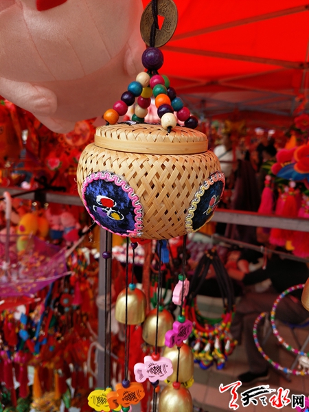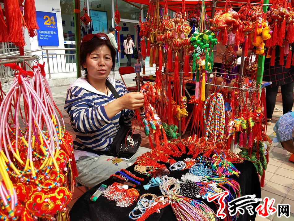 一位白发苍苍的老大妈转了好多摊位,精心的挑选着荷包,她说,以前年轻的时候,每到端午节前,都自己动手缝制荷包给孩子戴,现在上年龄了,眼睛不好了,针线活干不成了,但是每年都会给小辈买几个荷包戴。在图个喜庆的同时也让孩子们一辈一辈的记住中国的传统文化和民俗。