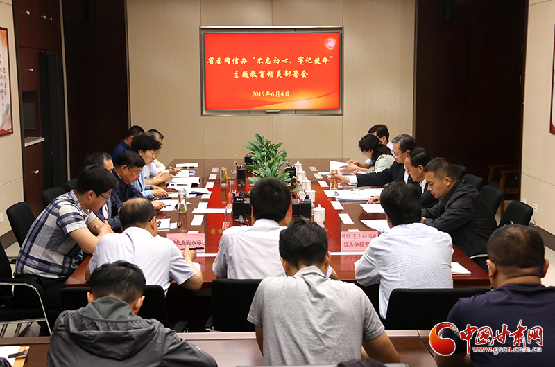 中国甘肃网6月4日讯(记者 李红军 文/图)今天上午,甘肃省委网信办召开“不忘初心、牢记使命”主题教育动员部署会,传达学习习近平总书记在“不忘初心、牢记使命”主题教育工作会议上的重要讲话精神,并对省委网信办主题教育活动进行了动员部署。