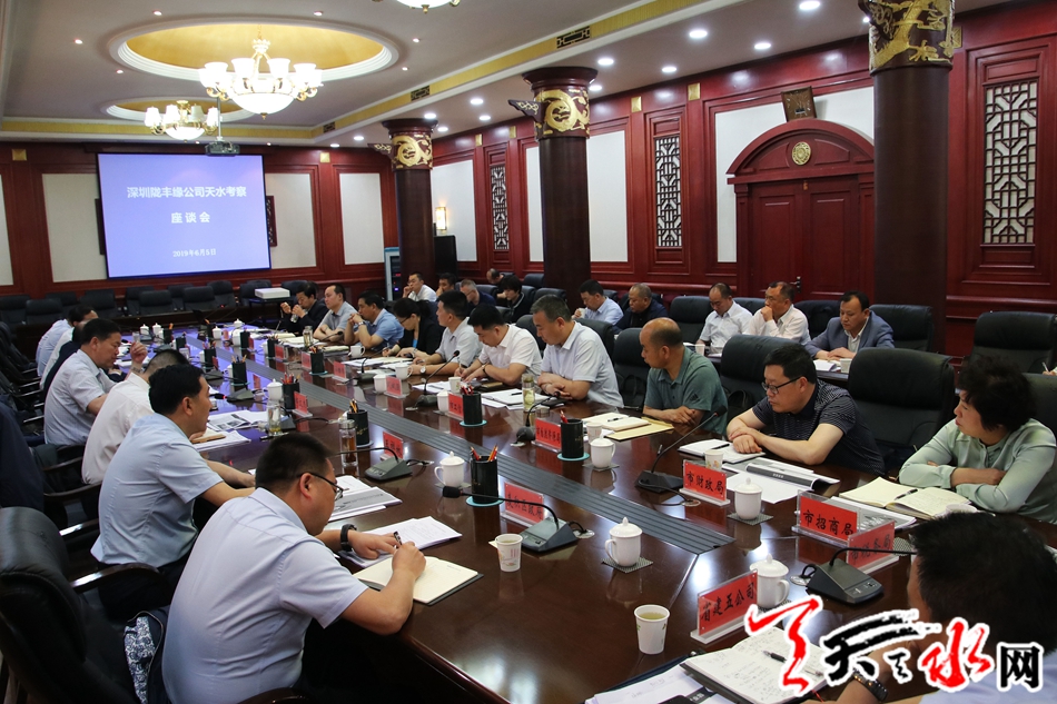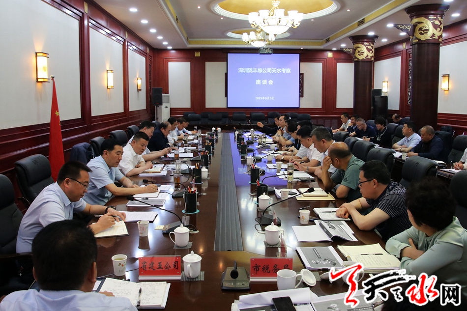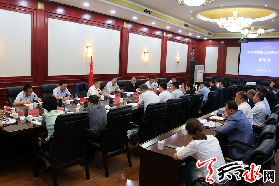 天天天水网讯【全媒体记者吴丽娜】6月5日上午,市委副书记、市长王军与前来我市考察的深圳陇丰缘实业有限公司董事长车雄伟一行进行座谈,交流对接智能制造产业园项目合作相关事宜。