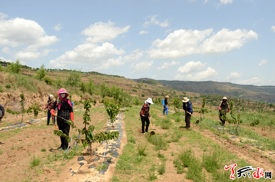 5月5日,盛夏时节,甘谷县安远镇巩川村满山遍野种植的樱桃、珍珠油杏、李广杏正在夏日的艳阳下孕育着丰硕果实。村民们忙碌在田间地头,这些“忙里偷闲”来这里务工的村民,大部分是村上的贫困户,他们通过土地入股的方式,即可以获得土地入股分红,也可通过管护苹果树,收获到勤劳付出的酬金。