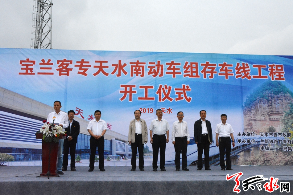 天天天水网讯【全媒体记者 李欣桐】6月11日,宝兰客专天水南站新增动车组存车线工程开工仪式举行,标志着该工程全面开工建设。市委常委、常务副市长赵四辈,市人大常委会副主任安志宏,市政协副主席王振宇出席开工仪式。