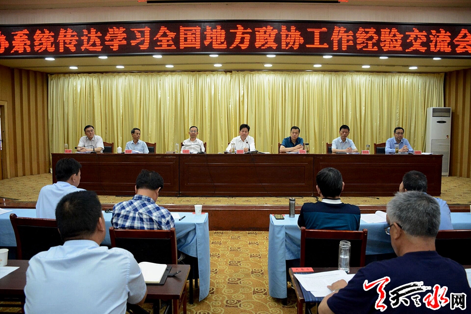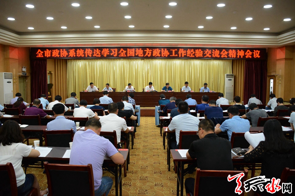天天天水网讯【全媒体记者 赵蔓】6月13日,全市政协系统传达学习全国地方政协工作经验交流会精神会议召开。市政协党组书记、主席张明泰在会上强调,我市各级政协系统要从理论维度、历史维度、实践维度、工作维度准确把握新时代人民政协工作的新方位新使命,学习贯彻会议精神,准确领会精神实质,用新理念新论断武装头脑,按新要求新部署指导实践,以务实举措推动市县政协工作不断创新发展。