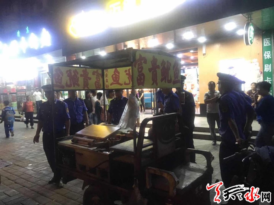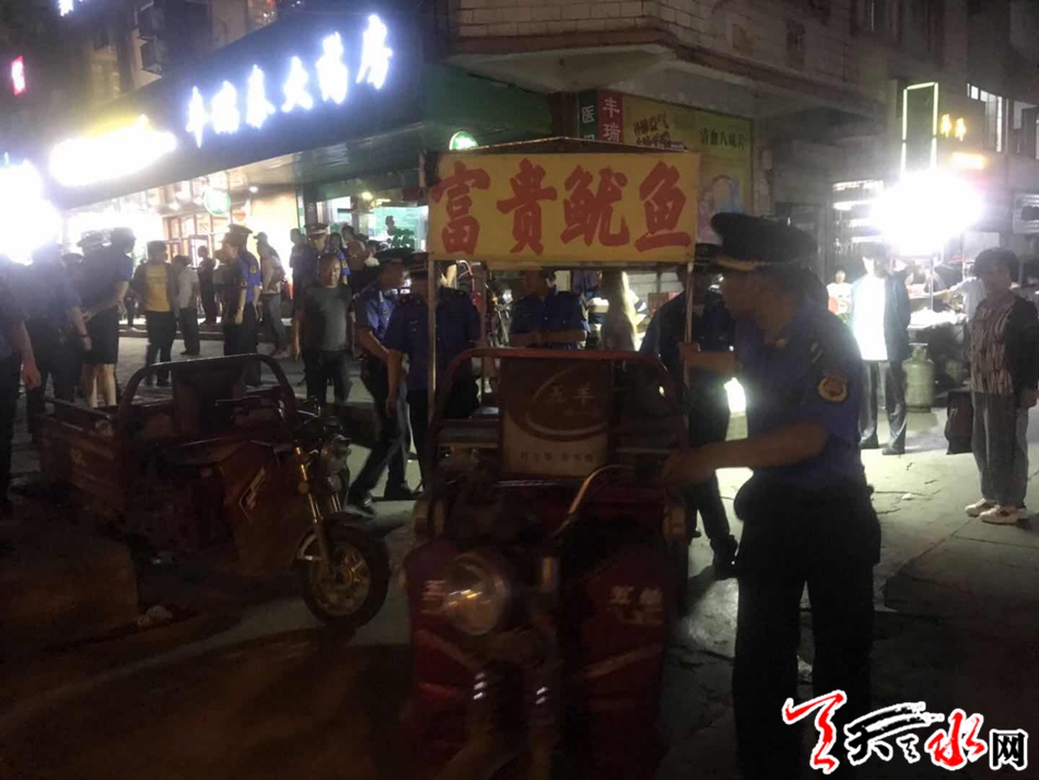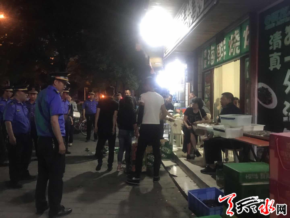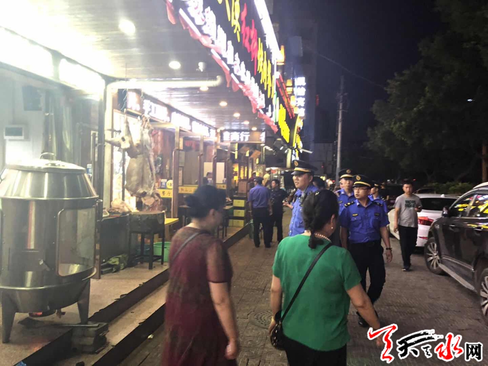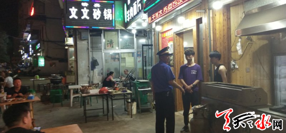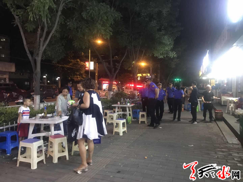近日,秦州区执法局组织骨干力量开展“清凉夏夜”专项整治行动,按照“严管重罚、集中取缔、综合治理”的原则,集中力量治烧烤、堵油烟、管摊点、劝归店,持续宣传,疏堵结合,严防硬守,打造清凉整洁的夏夜市容环境。