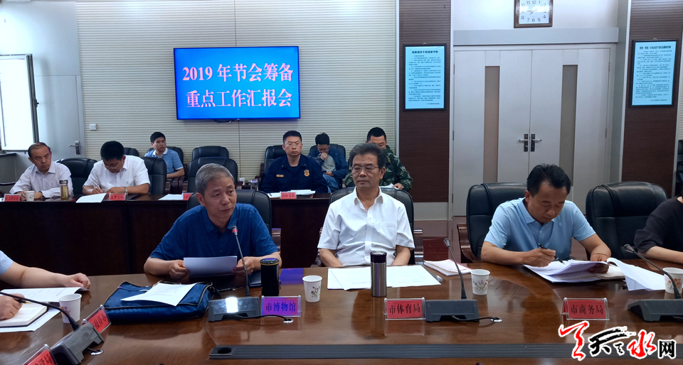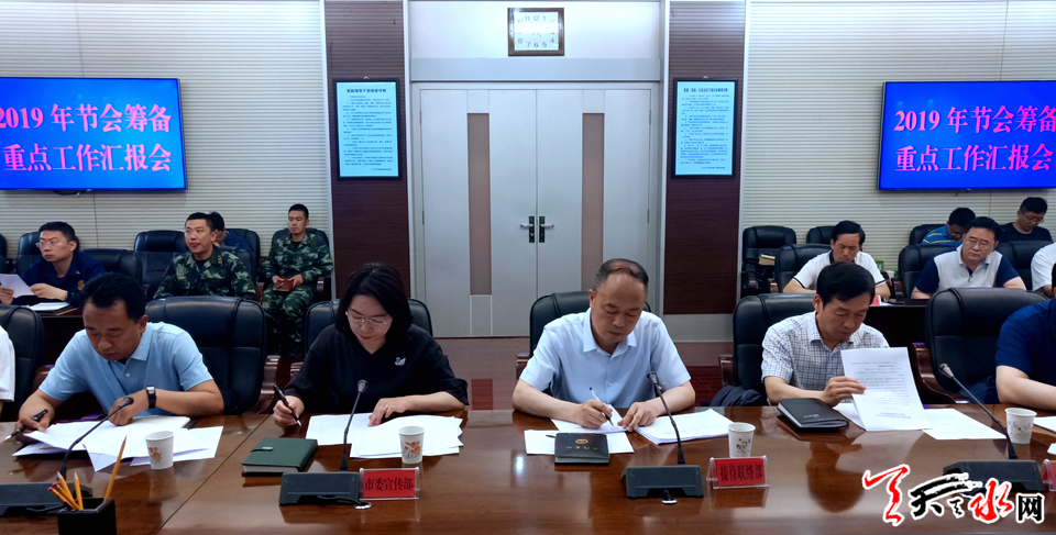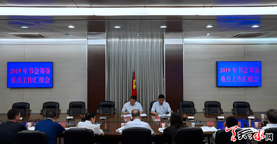 天天天水网讯【全媒体记者 王晓馨 张文都】6月14日上午,我市召开2019年节会筹备重点工作汇报会,听取节会组委会各工作部筹备进展情况汇报,对下一步工作进行再安排、再部署。市委常委、宣传部部长张建杰出席会议并讲话,副市长逯克宗主持会议。