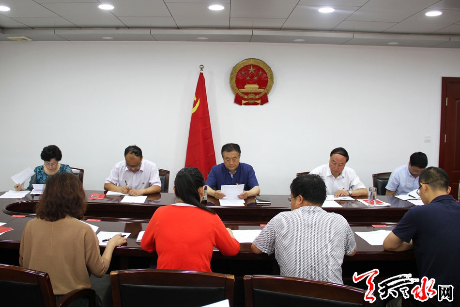 天天天水网讯【全媒体记者马放】6月14日,市人大常委会机关第一党支部召开党员大会,开展“主题党日”活动。市人大常委会主任蒋晓强,市人大常委会秘书长杨坤参加会议和活动。