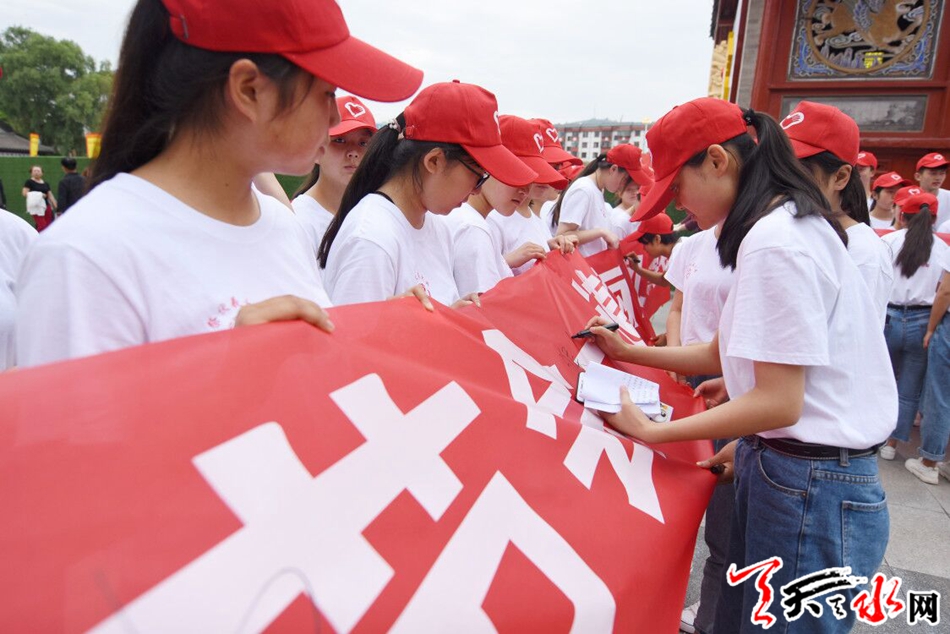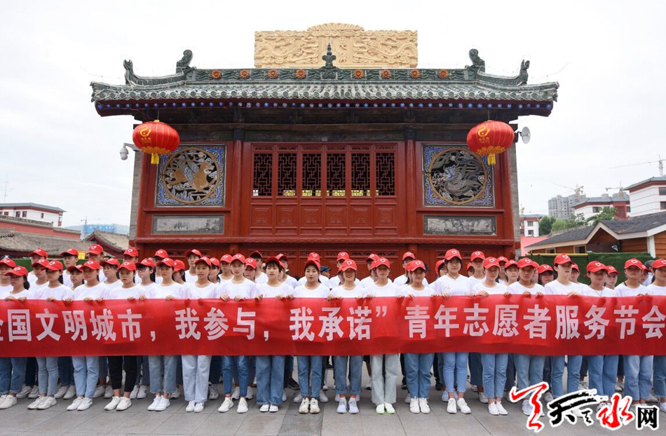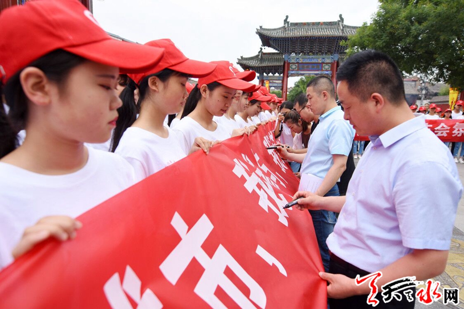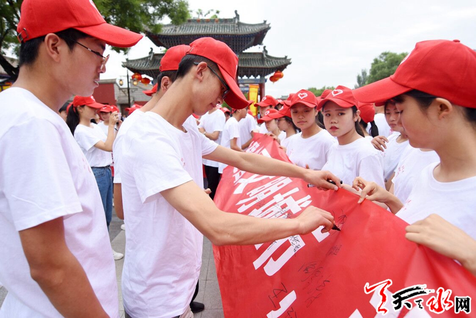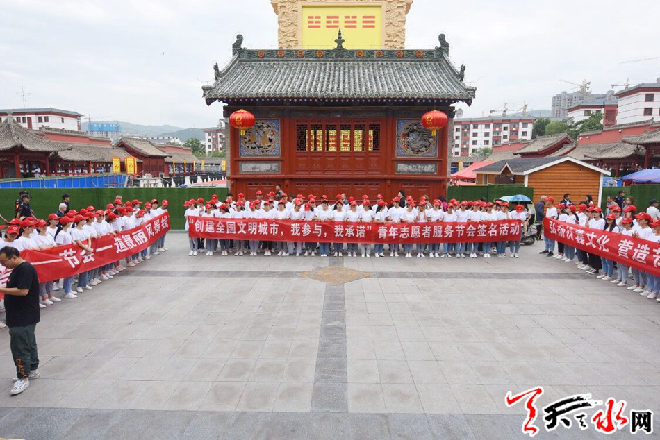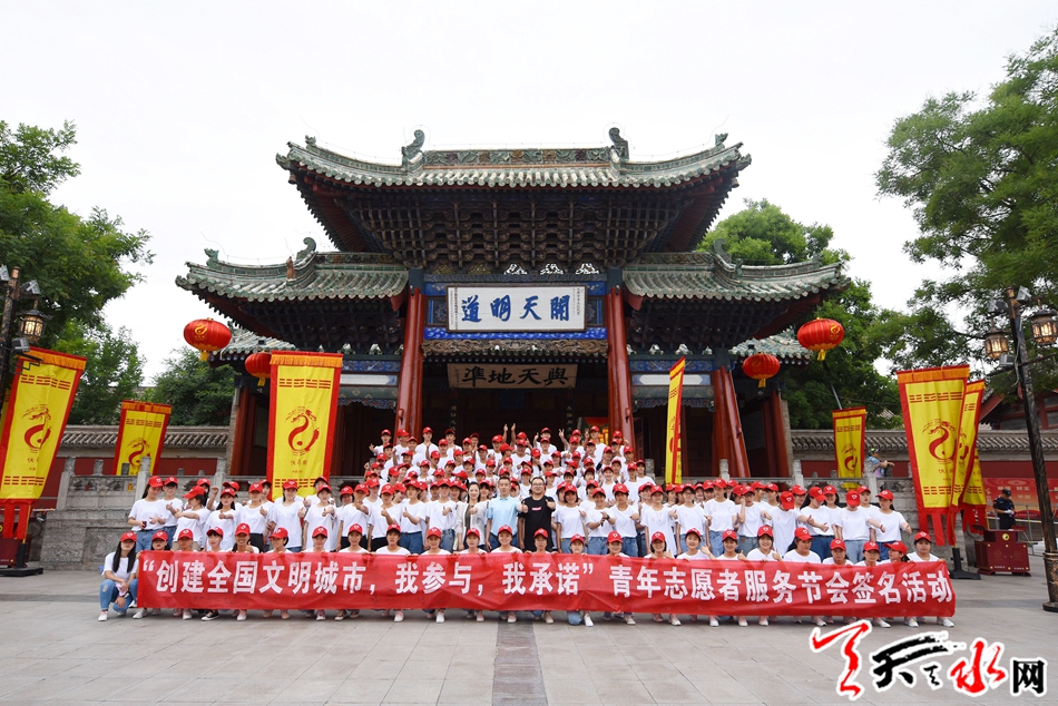 天天天水网讯(天水日报记者 李旺旺)6月17日上午,由团市委组织的“创建全国文明城市,我参与,我承诺”青年志愿者服务节会签名活动在伏羲广场举行。