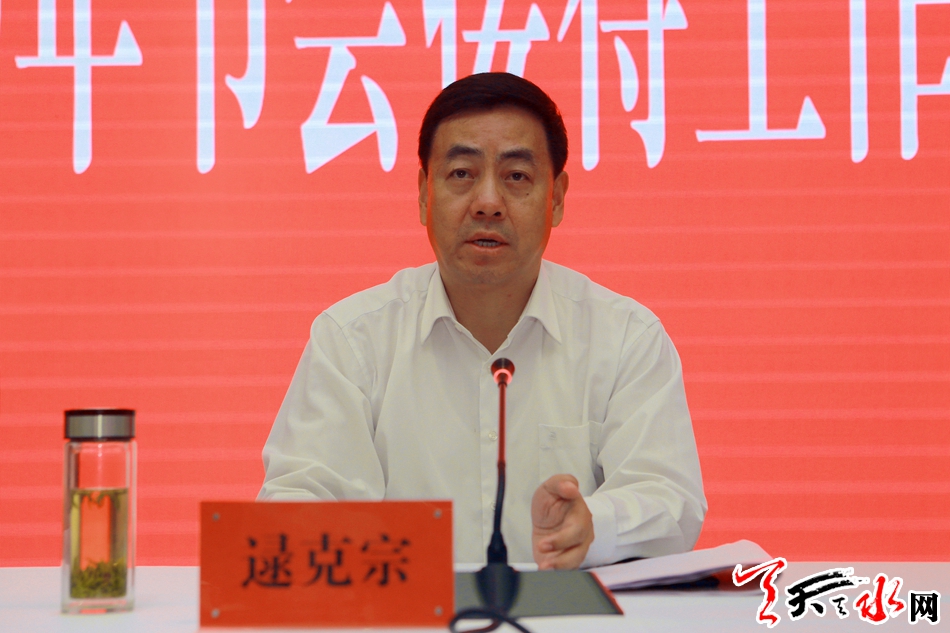 天天天水网讯(全媒体记者 李欣桐)6月18日下午,我市召开2019年节会接待工作安排会,对节会接待联络工作进行具体安排。副市长逯克宗在会上强调,有节会接待工作任务的各部门、各单位真正把大局意识、责任意识、担当意识体现在具体工作中,对照各自的任务扑下身子、狠抓落实,做到严谨细致、精益求精、上下努力、多方联动,以众志成城、万无一失的决心和热情周到的服务喜迎八方来宾。