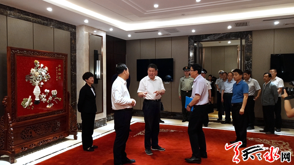 在天水宾馆、皇城国际大酒店,王军检查了环境卫生、食品安全及会见厅、宴会厅的布置情况。他强调,要软硬件并重,切实做好各项隐患排查,严把食品质量和食品安全,从细节入手、从需求着眼,努力为宾客提供细致入微的服务和安全舒适的环境,展现天水人民热情好客的良好风貌。