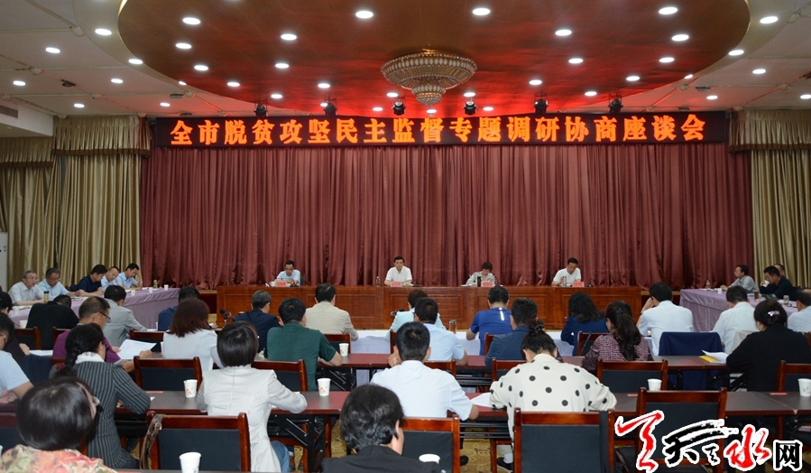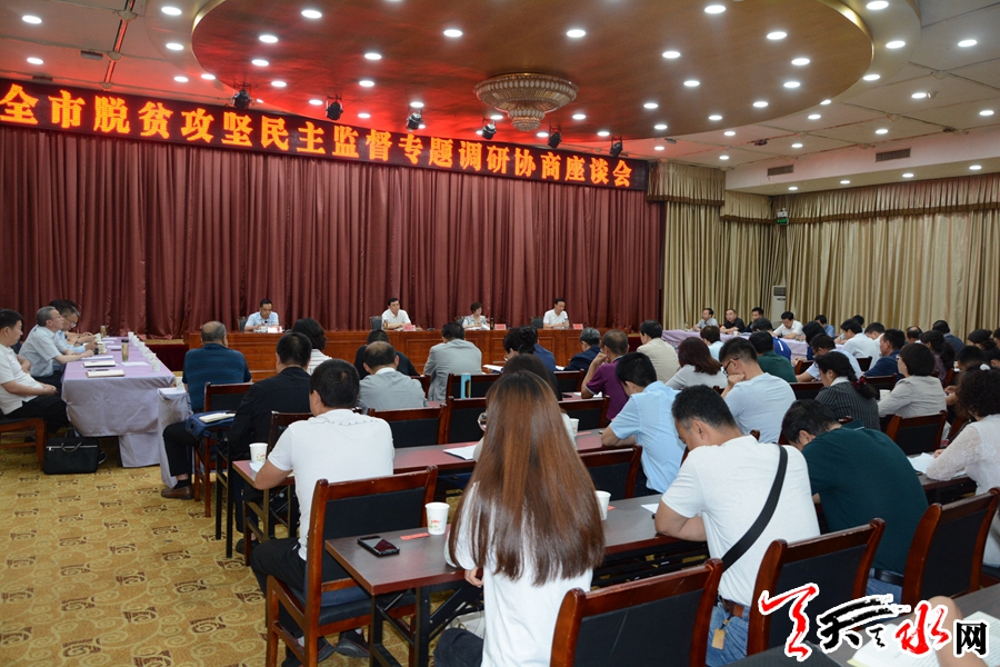 天天天水网讯【全媒体记者马哲】6月19日,全市脱贫攻坚民主监督协商会议在天水迎宾馆召开,会议主要听取各民主党派对各县区各专责单位开展脱贫攻坚监督工作情况的汇报和对今后进一步脱贫攻坚民主监督工作的意见和建议,研究分析民主监督过程中存在的问题,以进一步统一思想认识,靠实工作责任,凝聚各方力量,助推全市决战决胜脱贫攻坚战。