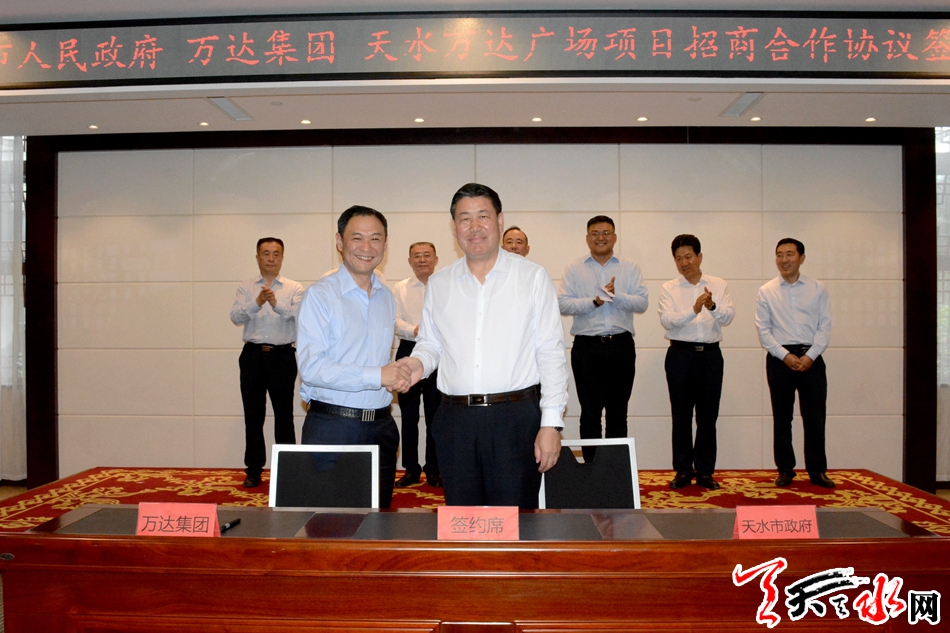 市委副书记、市长王军与万达集团首席副总裁刘海波签署了《天水万达广场项目招商合作协议》。
