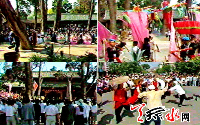 羲皇故里的民众在伏羲庙举行了隆重热烈的祭祀伏羲活动。此次祭祀伏羲活动是由政府发起,民间组织的,也是羲皇故里国际旅游业务洽谈会的一项内容。