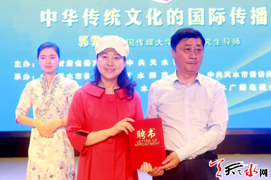 郭霁红祖籍天水,是中央电视台高级编辑,《中华情》总导演、制片人,连续七年担任中央电视台“中秋晚会”总导演,开创了“全息山水景观晚会”的电视导演手法。郭霁红在现代传媒传播方面取得了突出成绩,积累了丰富的成功经验。当天,天水师范学院聘请郭霁红担任该校客座教授。