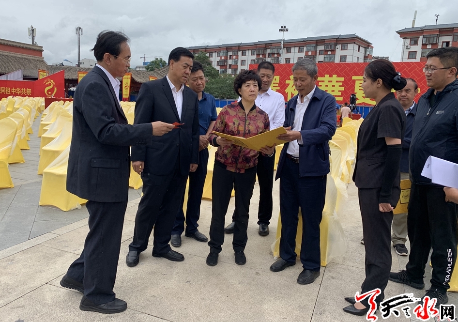 检查中,何伟一行先后来到伏羲广场、伏羲庙和天水宾馆,重点对公祭伏羲大典流程演练、现场氛围营造、来宾食宿安排、会见厅和宴会厅布置等情况进行了检查,听取了有关情况汇报,并就进一步做好筹备工作提出了指导意见。