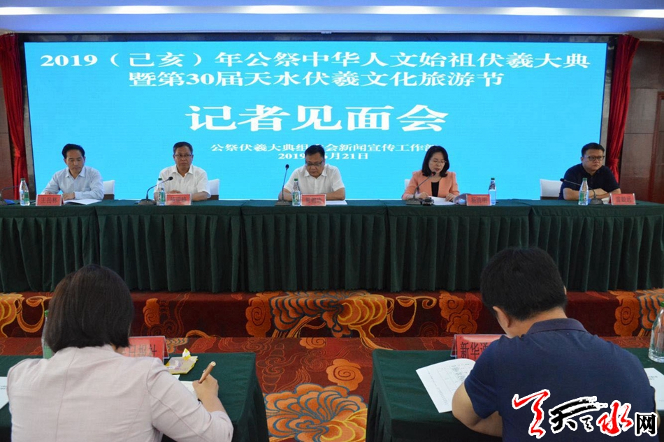 天天天水网讯【全媒体记者 王晓馨】6月21日下午,公祭伏羲大典组委会新闻宣传工作部在华天电子宾馆举行2019(己亥)年公祭中华人文始祖伏羲大典暨第30届天水伏羲文化旅游节记者见面会。